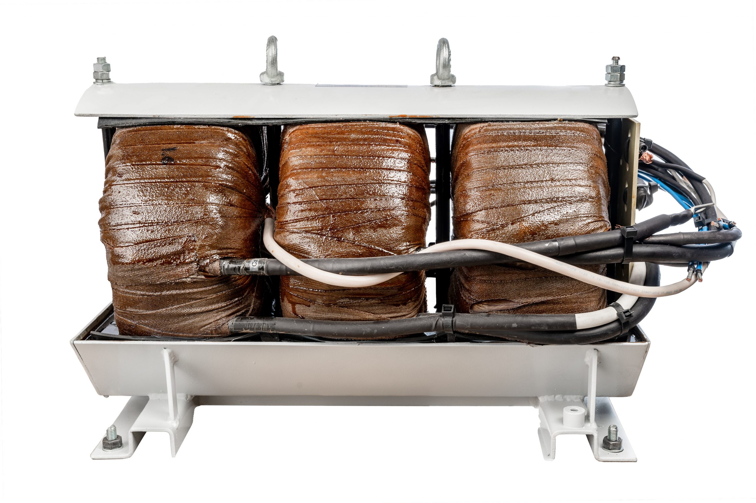 Трёхфазные трансформаторы до 50 кВА, предназначенные для работы в аппаратуре промышленного и бытового назначения. Трансформаторы трехфазные реализуются сборкой трёх однофазных тороидальных трансформаторов с соединением в схему звезда, треугольник или зиг-заг. Трансформаторы мощностью до 3 кВА реализуются вертикальной сборкой, мощностью более 3 кВА – горизонтальной сборкой. В отдельных случаях реализуется сборка в виде «этажерки».
